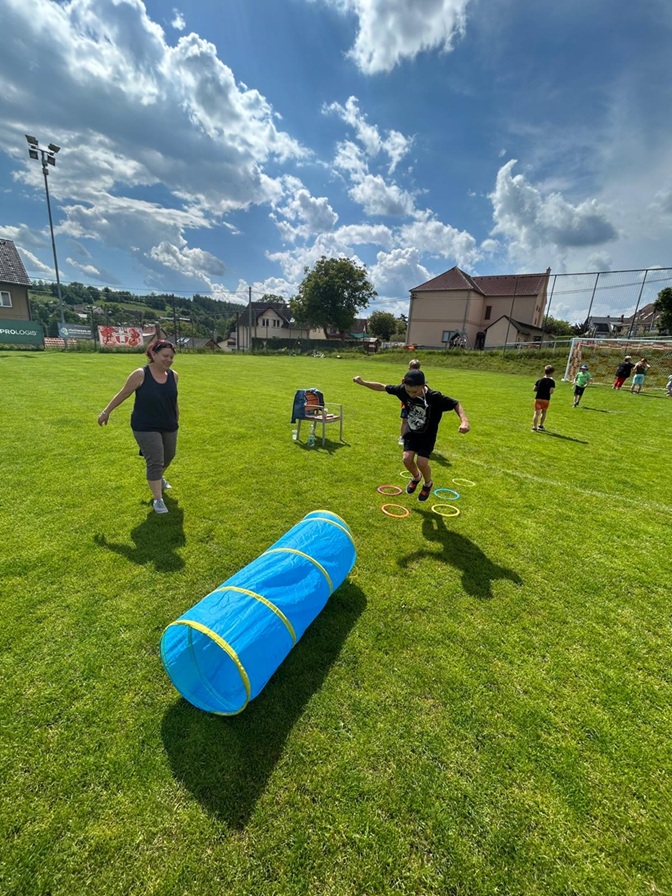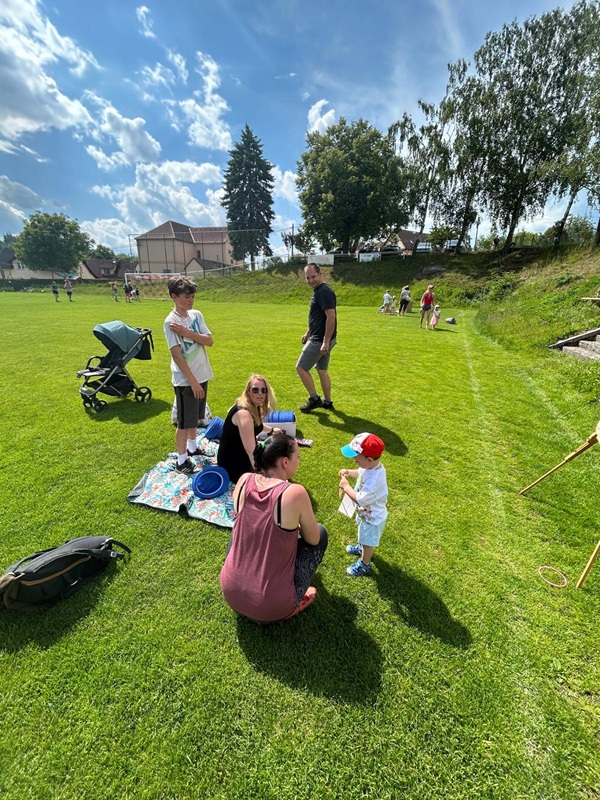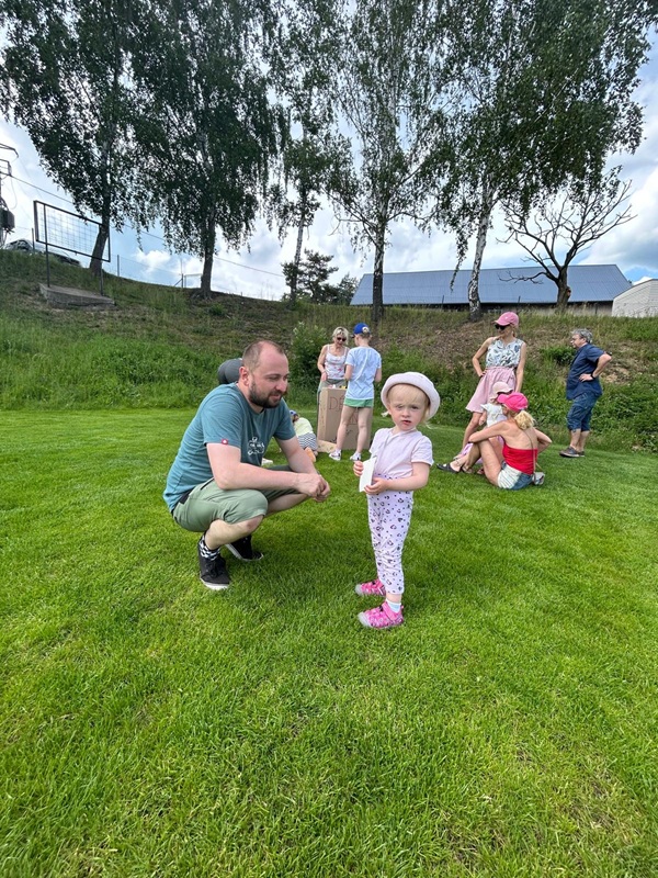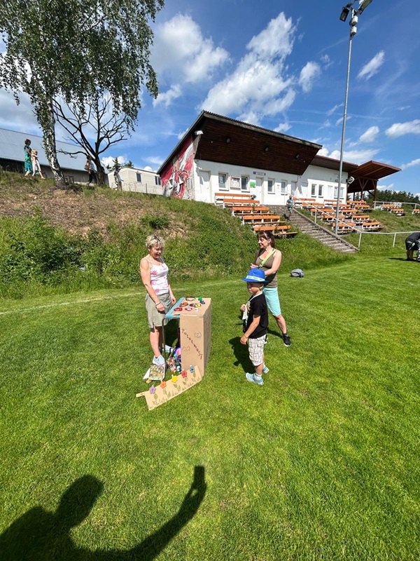 Děti za svou šikovnost obdržely malé pozornosti a sladkosti, které jim snad udělaly radost a zpříjemnily jejich den. Celé odpoledne nám svítilo sluníčko, ale k závěru se zamračilo, přišel déšť a bouřka a to nás ze hřiště vyhnalo schovat se pod střechu. Naštěstí se počasí do půl hodinky umoudřilo a tak jsme sváteční den mohli zakončit společným opékáním buřtíků.