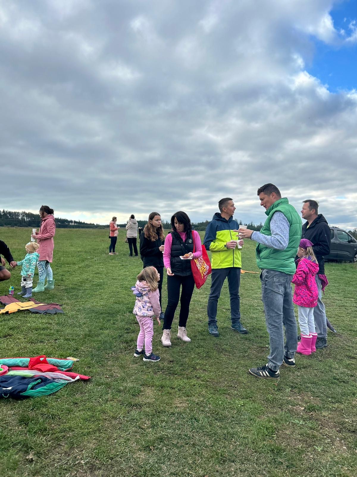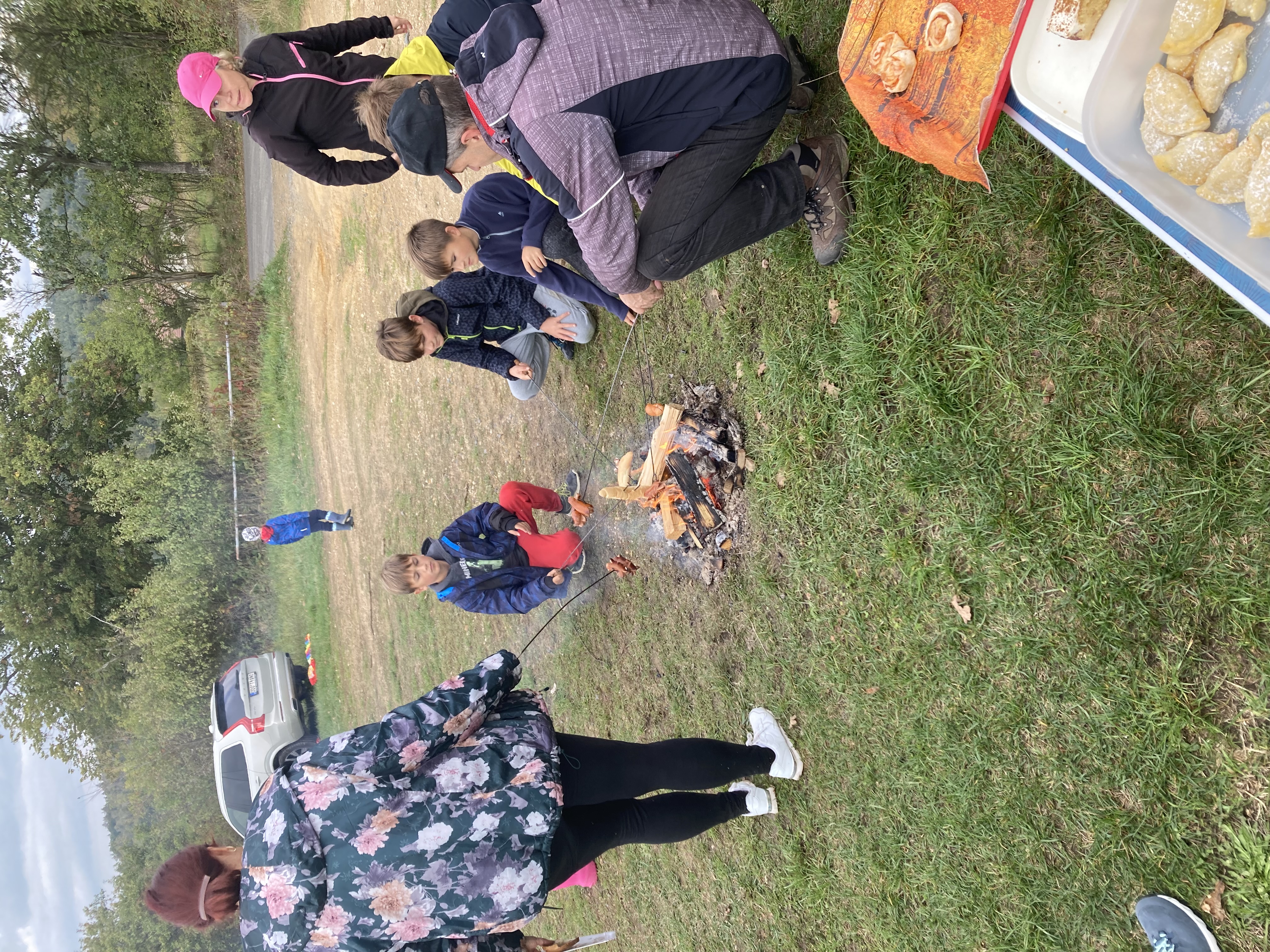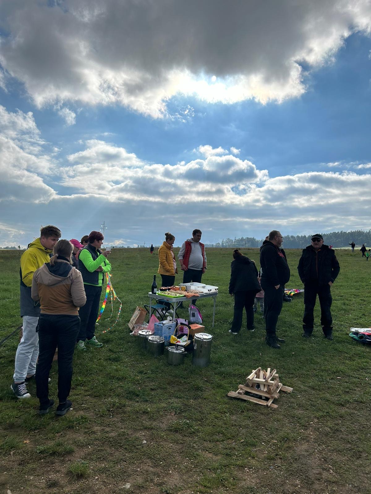 Když si to děti dostatečně užily, vítr zase ustal a všichni účastníci se přesunuli k ohýnku, kde si mohli opéct buřtíky, nebo se občerstvit dobratami, které napekly a připravily členky CPV. Na zahřátí byl pro děti připraven ovocný čaj a pro dospělé káva nebo stavřené víno.
