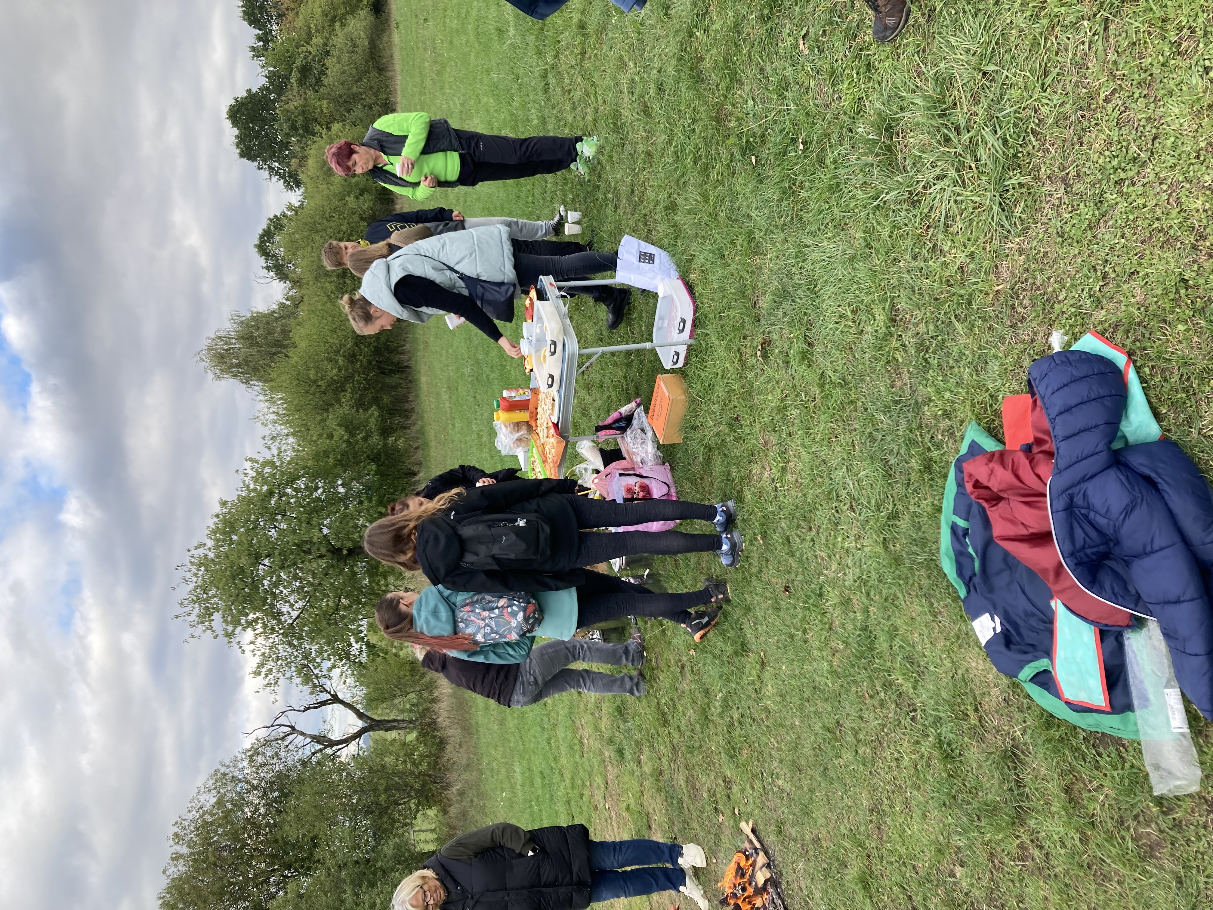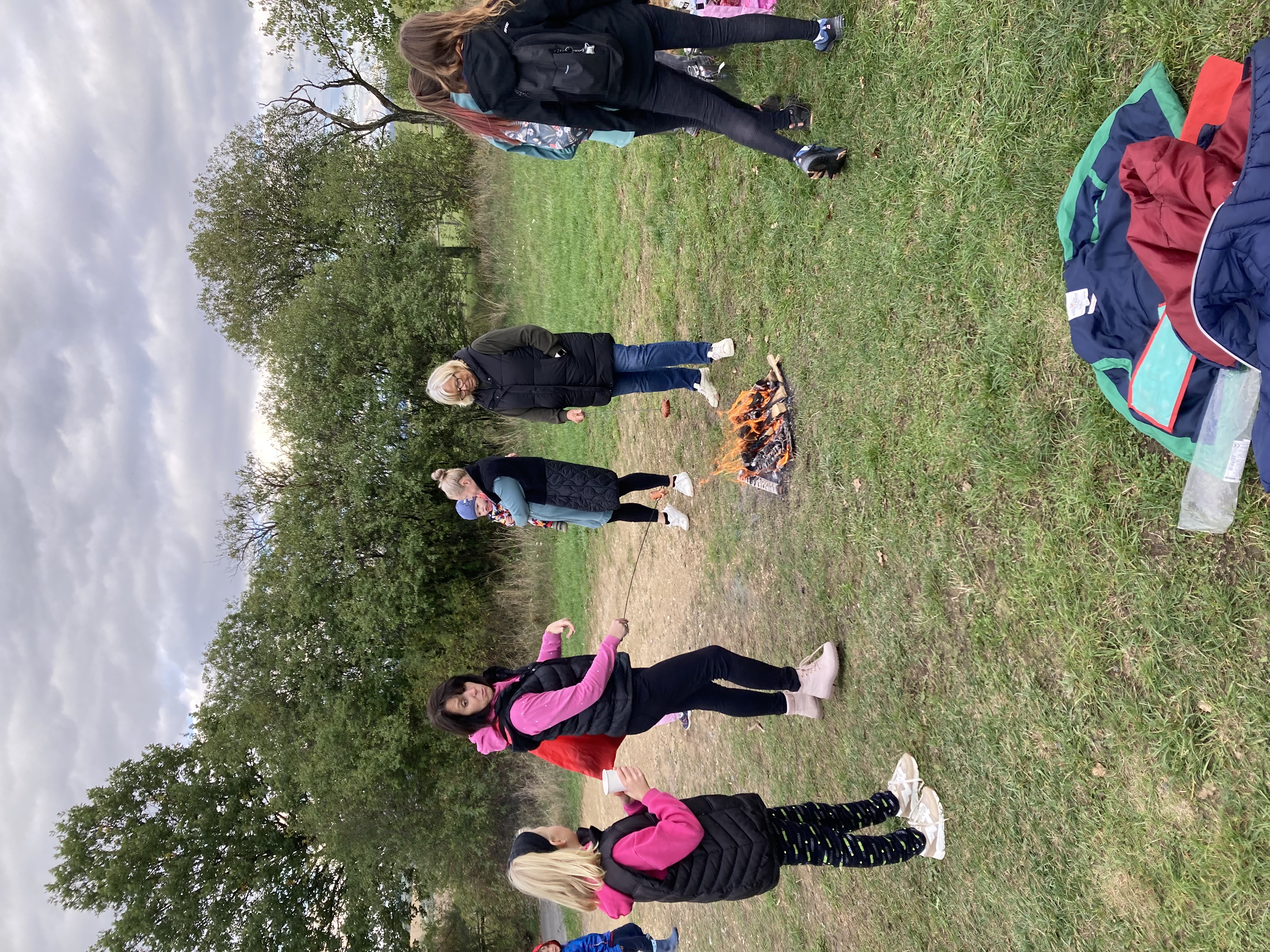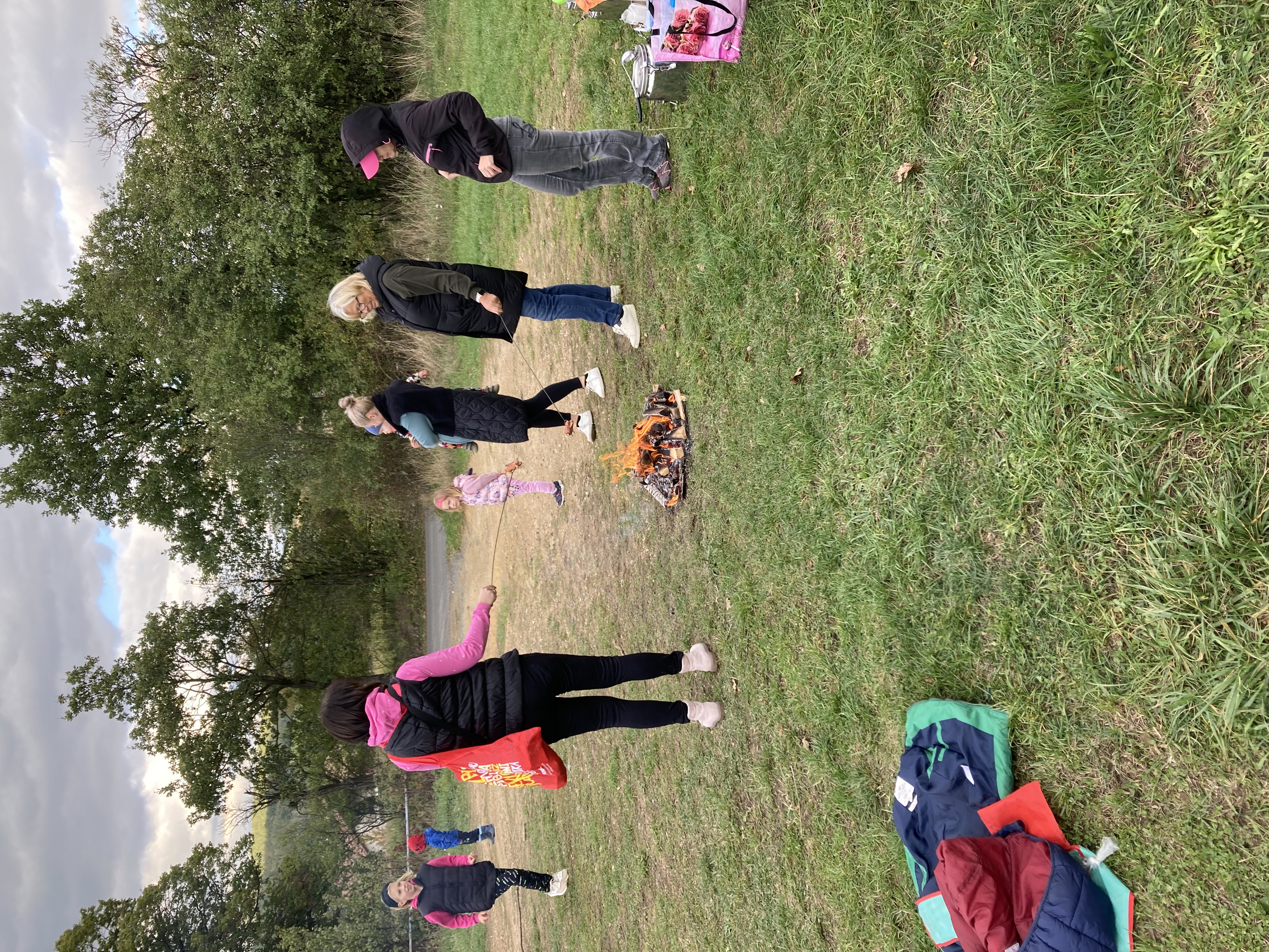 Když si to děti dostatečně užily, vítr zase ustal a všichni účastníci se přesunuli k ohýnku, kde si mohli opéct buřtíky, nebo se občerstvit dobratami, které napekly a připravily členky CPV. Na zahřátí byl pro děti připraven ovocný čaj a pro dospělé káva nebo stavřené víno.
