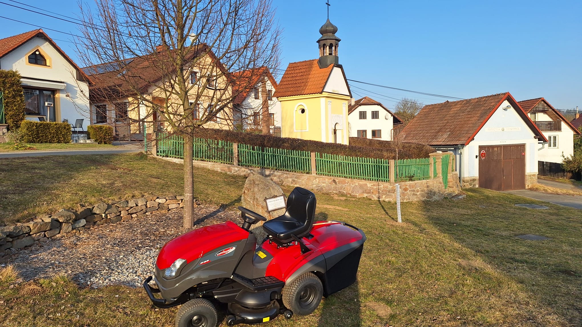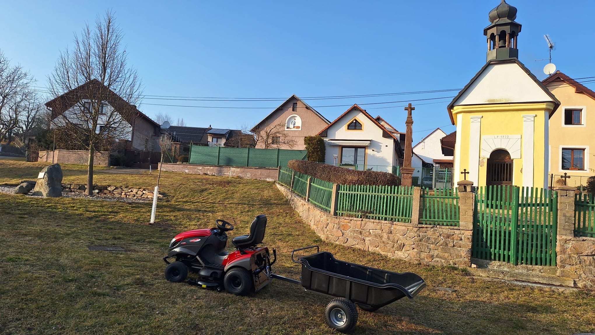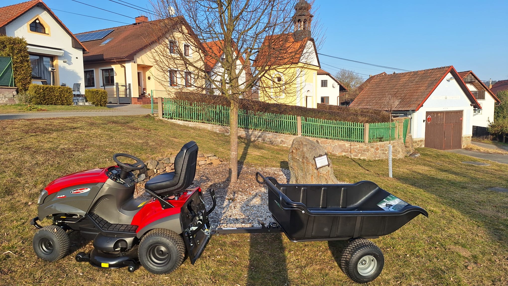 Obec zakoupila pro potřeby údržby (sekání) veřejných prostranství v osadě Třemošnice nový traktůrek XTY 190 HD včetně valníčku od firmy Mountfield.