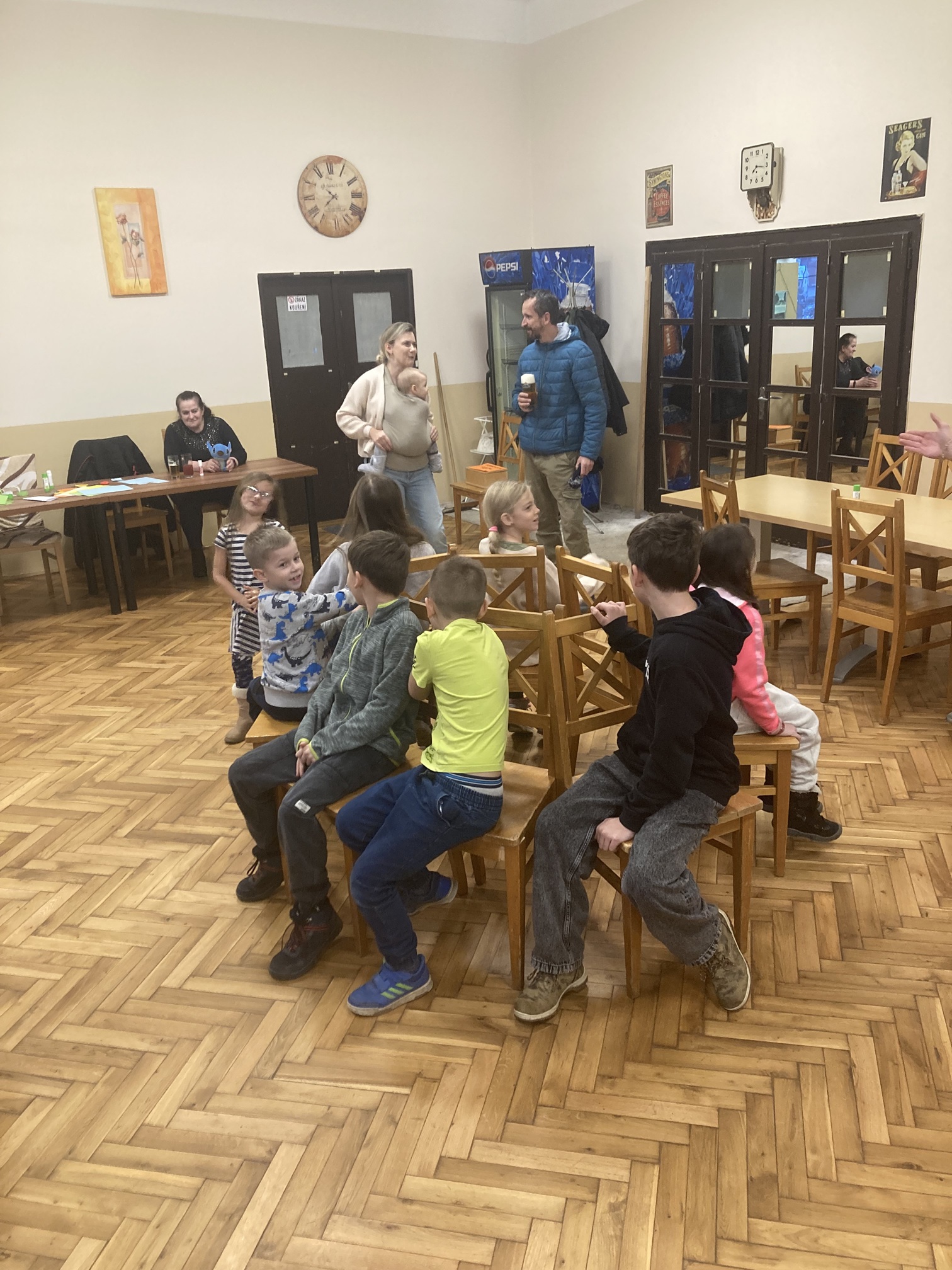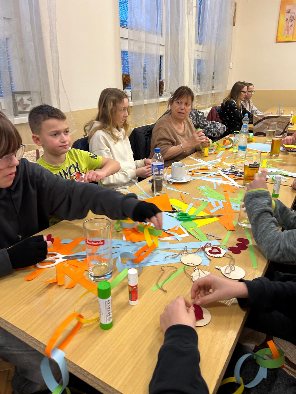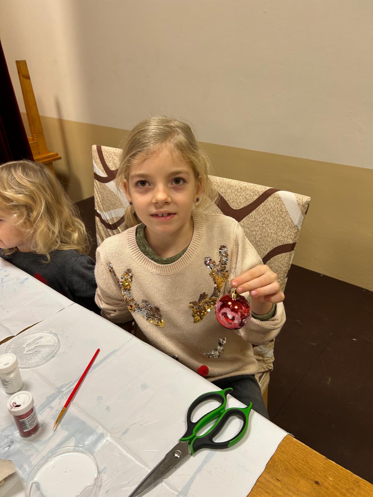 Sešlo se nás jen pár. Možná je na vině aktuálně vysoká nemocnost nebo pilné domácí přípravy na Vánoce, ale s těmi co dorazili, jsme prožili hezké odpoledne. Děti si s pomocí rodičů vyrobily vánoční ozdoby. Společnými silami jsme vyrobili opravu dlouhý řetěz z barevného papíru. Zahráli jsme si různé hry a zazpívali vánoční koledy. Pro každé dítě byl pod stromečkem schován malý dárek, který děti, doufám, potěšil. Na závěr odpoledne jsme společně zapálili prskavky a přivolávali Ježíška zpíváním koled.