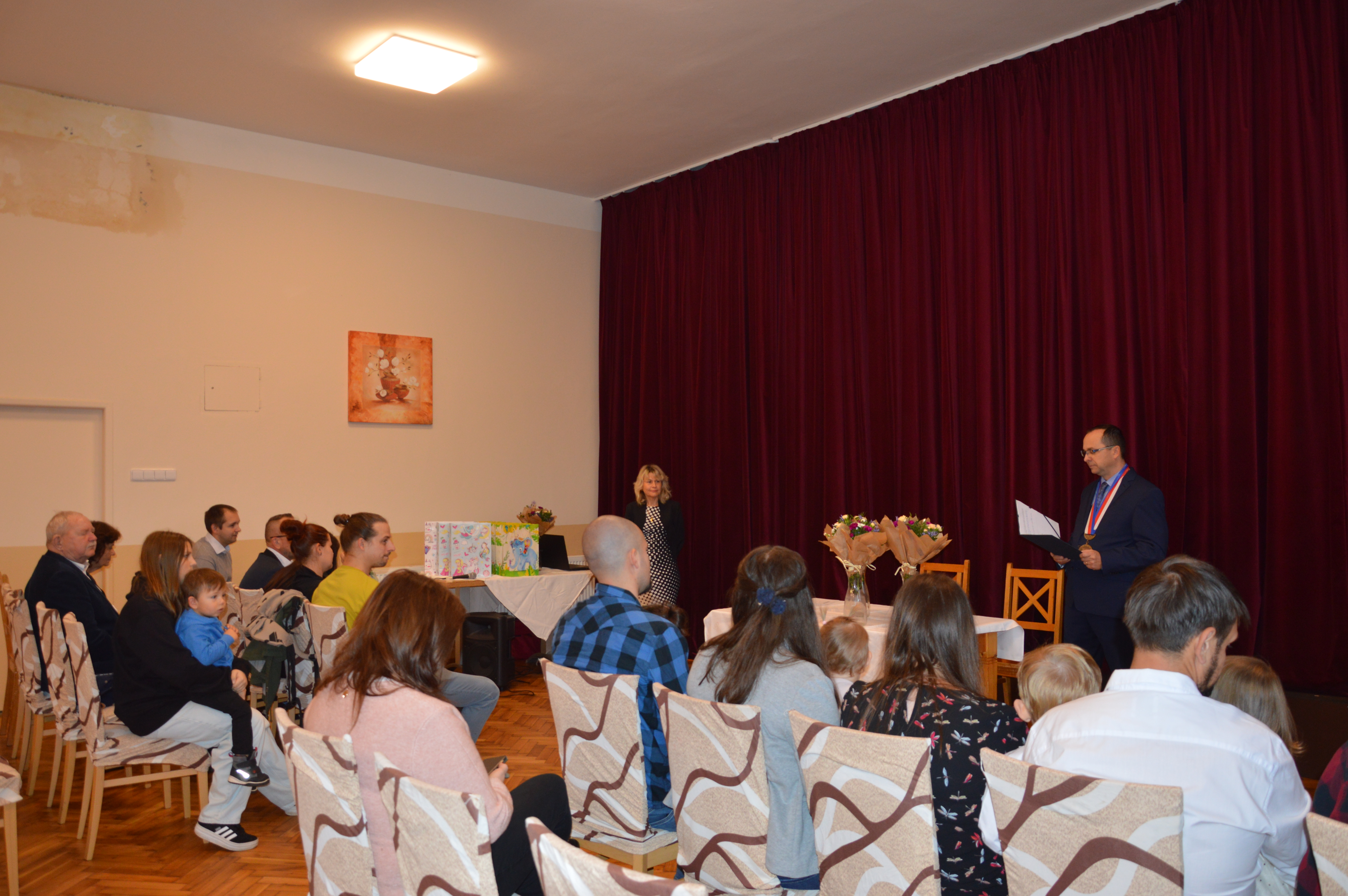 Děti obdržely pamětní list a dárkovou tašku, která obsahovala sadu porcelánového nádobí, pro holčičky s motivem víl a pro chlapečky s obrázky autíček. V každé dárkové tašce byla kniha Dováděník aneb zážitky pro předškoláky od Kateřiny Reehové. Maminkám byla předána kytička.