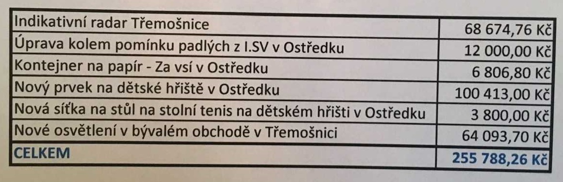 V rámci rozpočtu obce Ostředek bylo vyčleněna pro participativní složku částka ve výši 200.000Kč.
