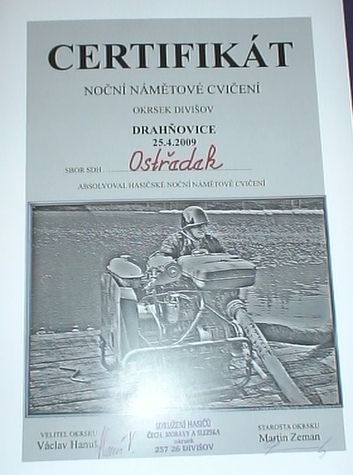 Zásahová jednotka SDH Ostředek ve složení Fanda Nerad, Petr Sadílek, Petr Svoboda, Petr Malina, Jiří a Honza Schovánkovi se v sobotu 25. dubna zůčastnila nočního taktického cvičení v Dráhňovicích a okolí.