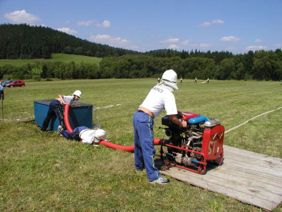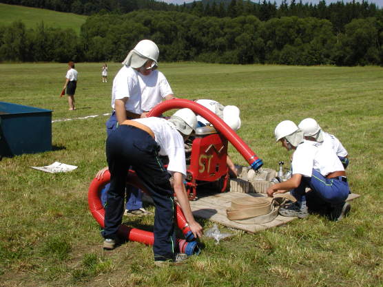 Ostředečtí hasiči v Býkovicích pod Blaníkem (srpen 2002)