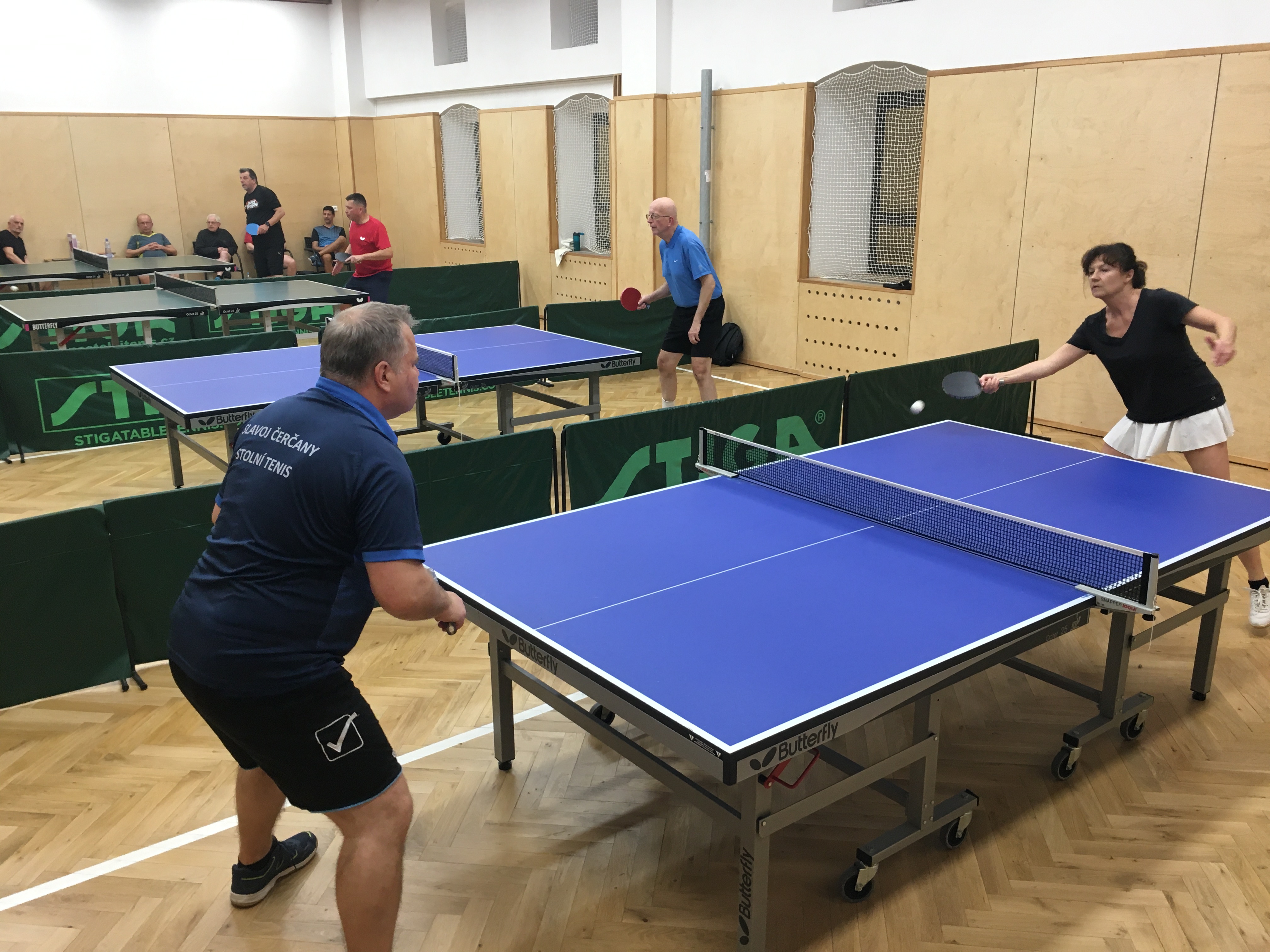Béčko posilněné o Juru a Marka chtělo získat tři body s Čerčany. Plán ne úplně vycházel, protože bodovali jen Jura a Marek, který ale ztratil první dvouhru v pětisetech s Bohanusem. Naši tahali za kratší provaz. Pomohla skreč hostujícího Procházky proti Jarce Bartůškové, čímž přibyl na naše konto šestý bod. Zachránit remízu bylo možné, jen pokud Jura a Marek v posledních třech dvouhrách vyhrají. Jura svoji část úkoly splnil lehce, obě dvouhry vyhrál. Marek začal taky velmi dobře, se Síbrtem vyhrál první dva sety, ale soupeř se nevzdal a srovnal a tak rozhodl až pátý set, který Marek s přehledem získal a zajistil devátý "remízový" bod pro náš tým. Byla to první vyhraná pětisetovka v zápase, čtyři předtím naši prohráli... Získaný bod pomohl béčku zvýšit náskok před sestupovým místem.