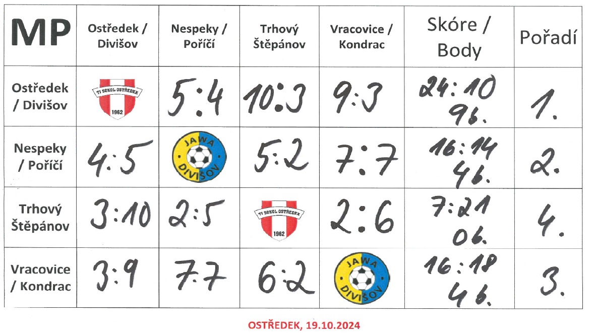 Kromě našeho ostředecko-divišovského týmu se na zeleném za příjemného fotbalového počasí představily ještě družstva FK Trhový Štěpánov, Vracovice / Kondrac a Nespeky / Poříčí.