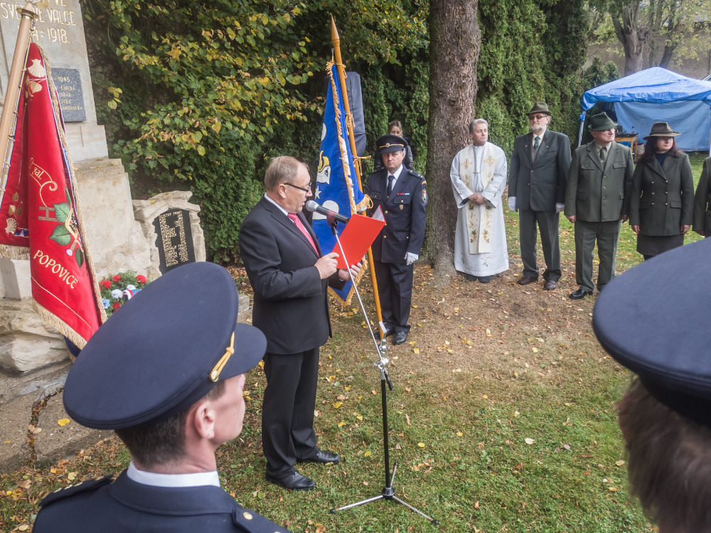 V sobotu 27.10.2018 probíhaly v celé republice oslavy 100. výročí vzniku Československé republiky. Popovice nezůstaly stranou a jako většina obcí uspořádaly skromnou oslavu. Od 14.00 hodin byla v kostele Sv.Jakuba Staršího v Popovicích zahájena bohoslužba paterem Košmidkem, který požehnal praporu a znaku Obce Popovice. Po bohoslužbě se vydal průvod tvořený dobrovolnými hasiči, členy TJ Sokol , členy Mysliveckého sdružení Skála a také občany k nedalekému pomníku uctít památku padlých v I. a II. světové válce. Při vzpomínkové akci byl položen věnec k pomníku a promluvil starosta obce F.Páv. Ve svém projevu mimo jiné zdůraznil, že důležitým momentem v současném životě je připomínat si hlavní mezníky vzniku a vývoje Československé a České republiky. Nezapomínat a nebát se vyslovovat slova vlast, vlastenectví. A v tomto duchu vychovávat i další generace.